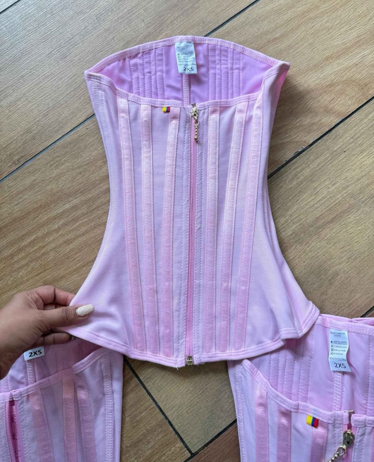 Esta prenda de alta compresión tiene un material elástico y una fuerte resistencia gracias a sus 15 varillas de soporte. También tiene un sistema de ganchos y cremalleras que mejoran tu postura y soporte lumbar.
